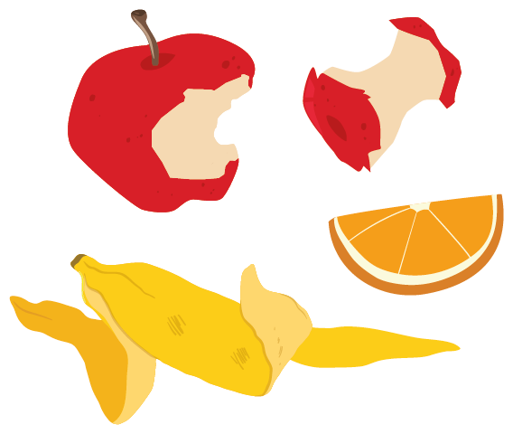 - Cáscara de frutas (manzana, naranja, piña, banano, pera, durazno, etc.)